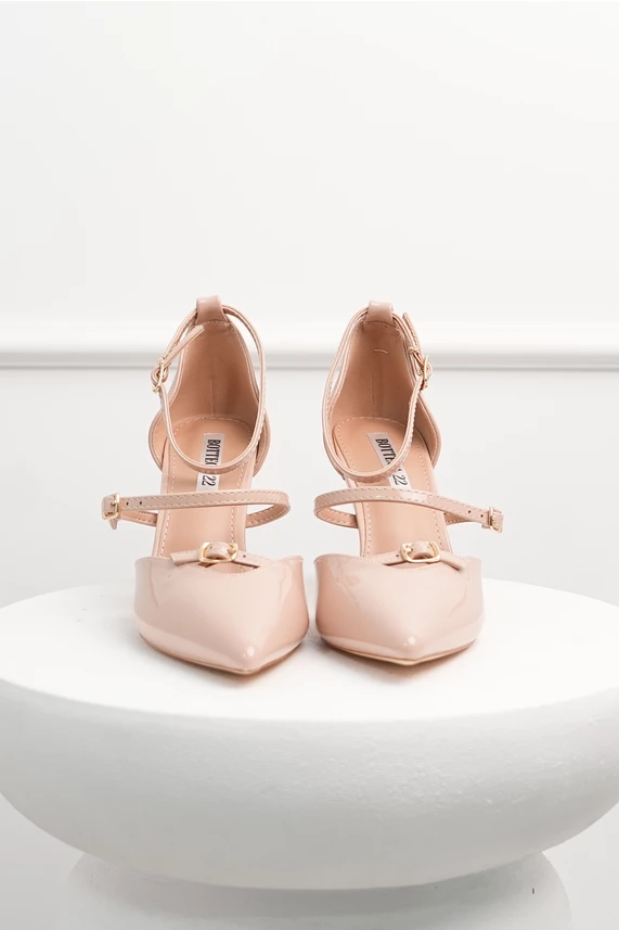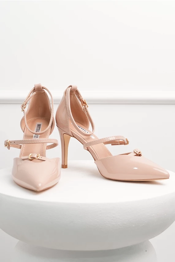 Pantofi bej lacuiti din piele ecologica cu barete