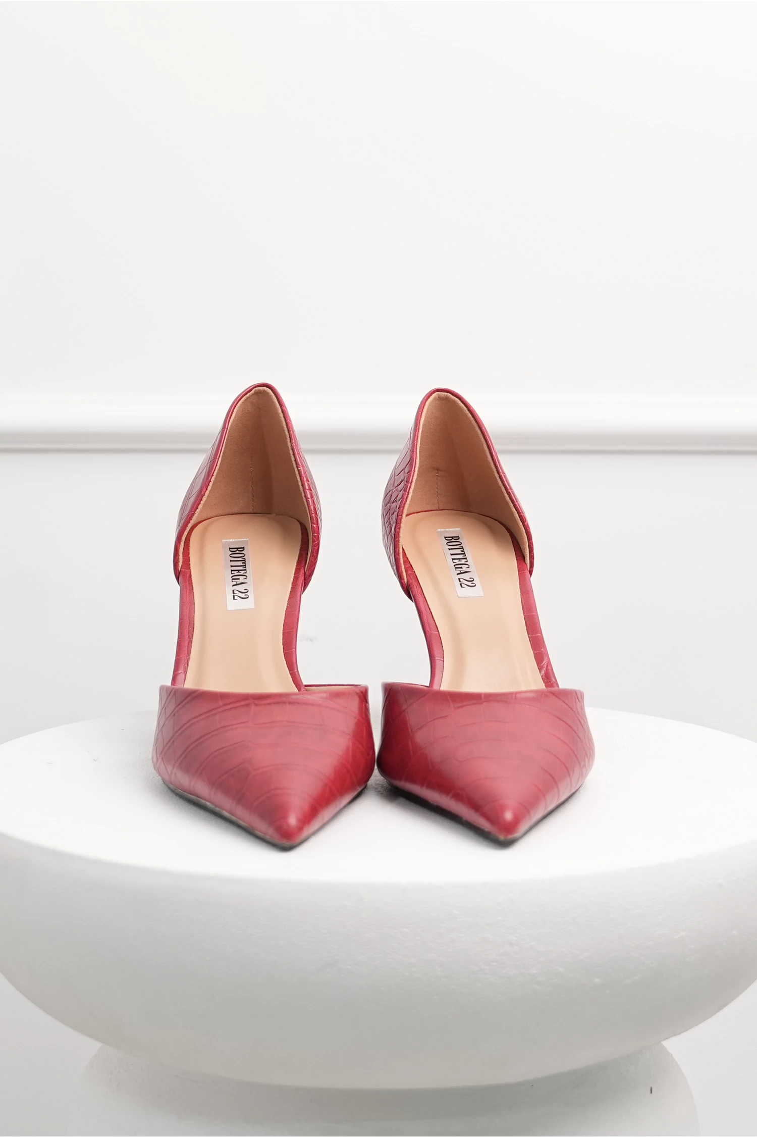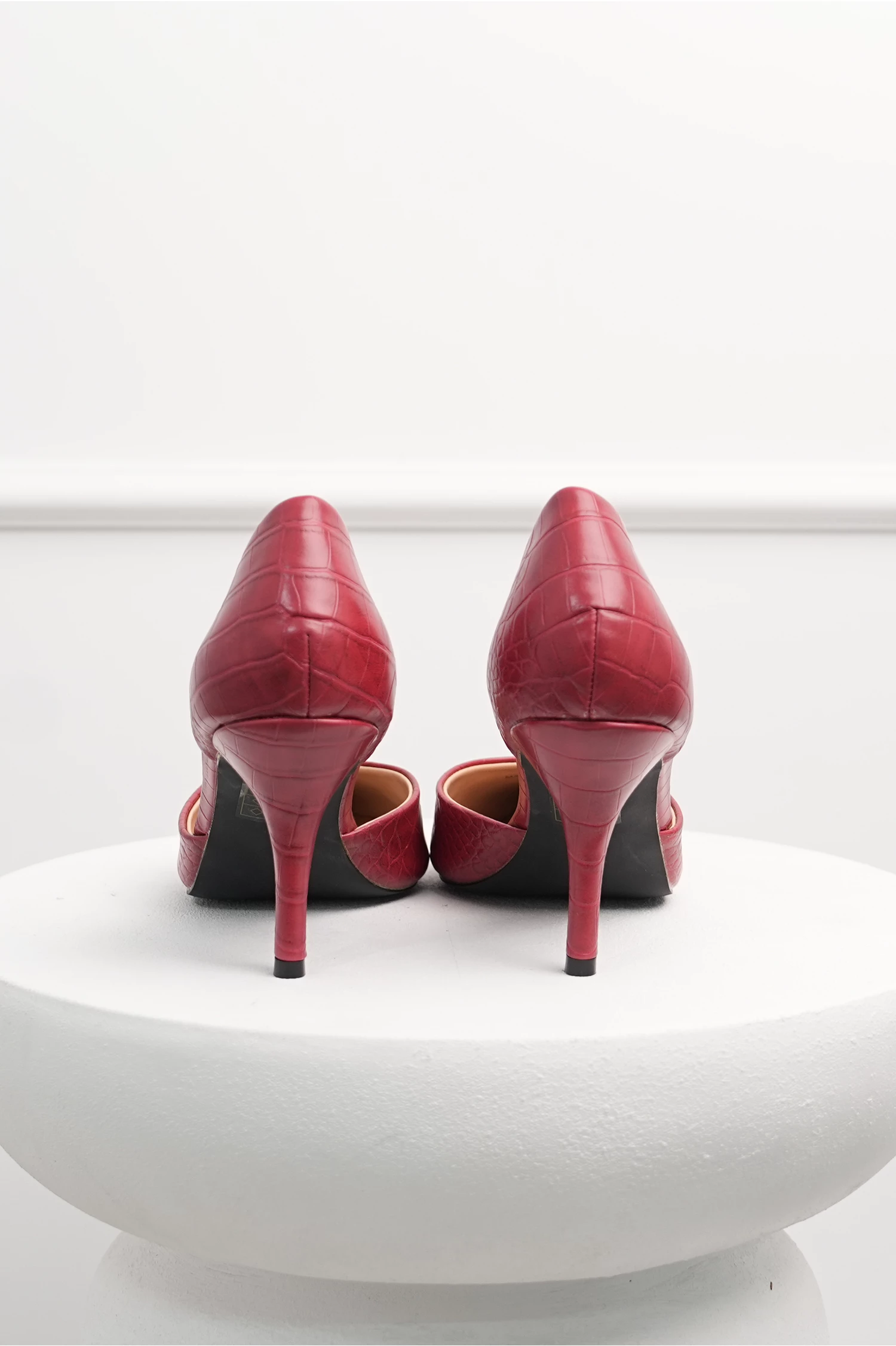 Pantofi rosii eleganti din piele ecologica cu model snake