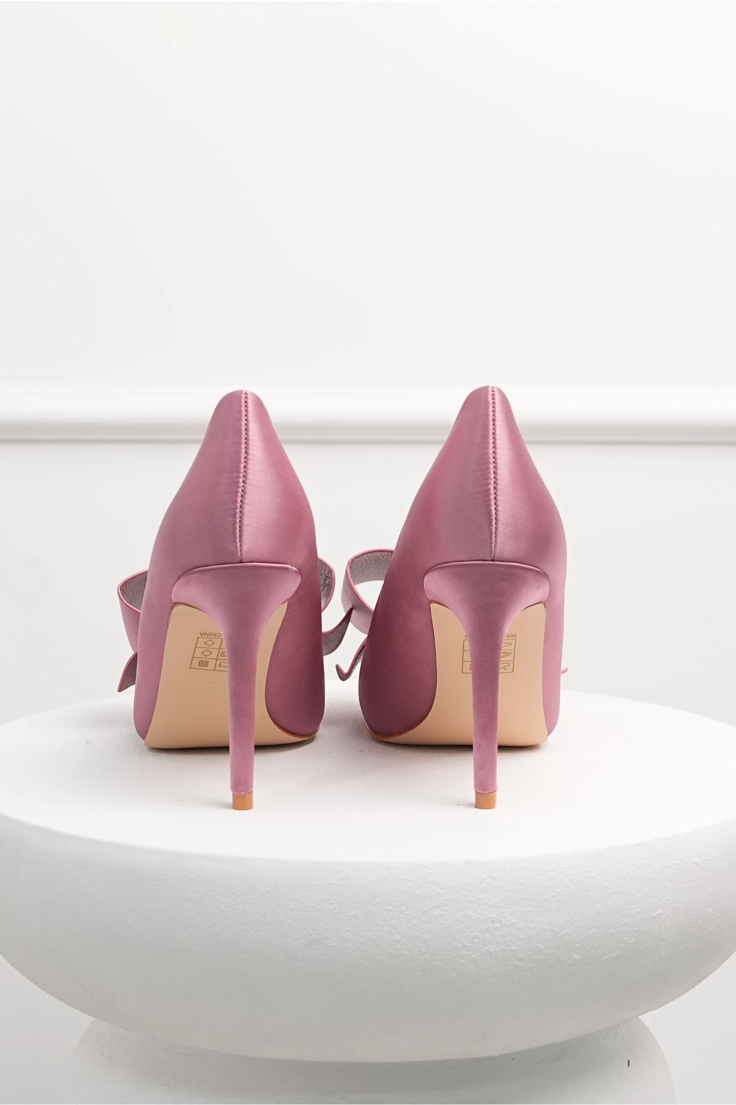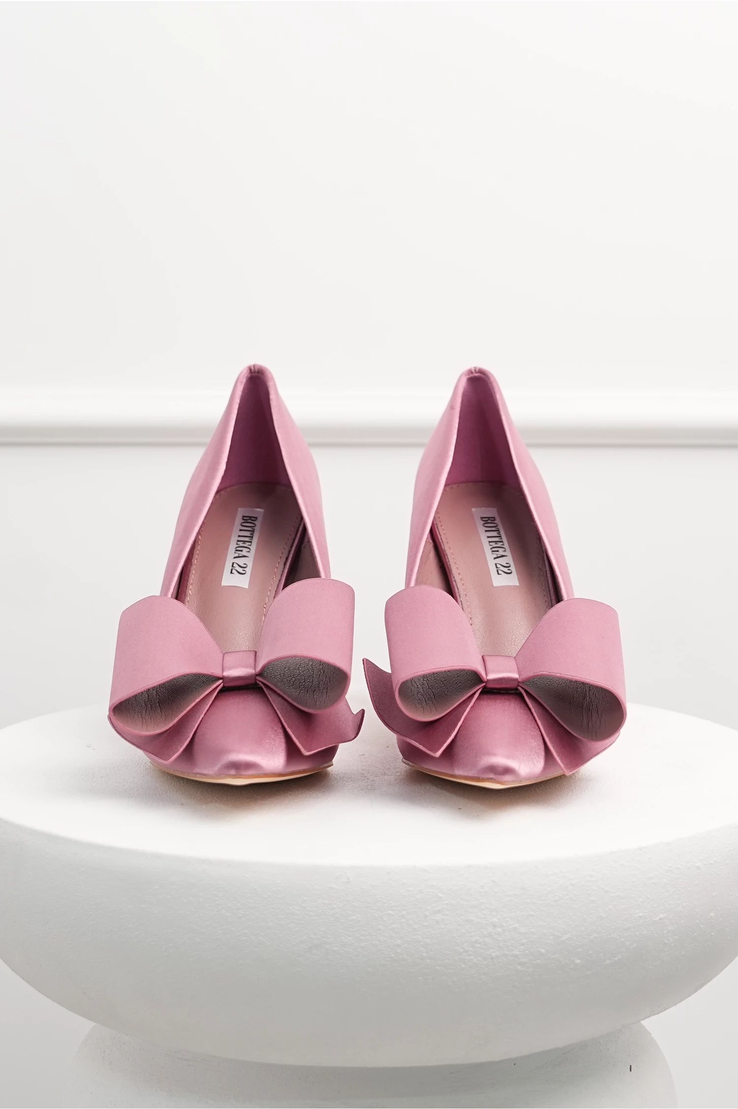 Pantofi roz din material satinat cu funda maxi pe varf