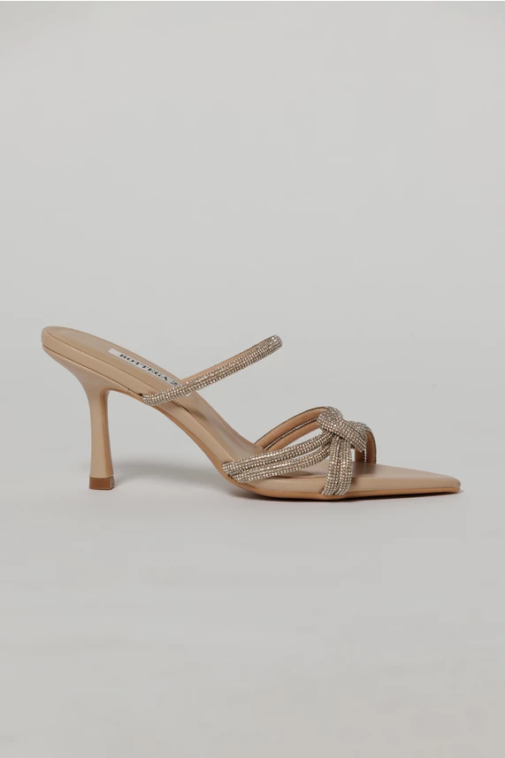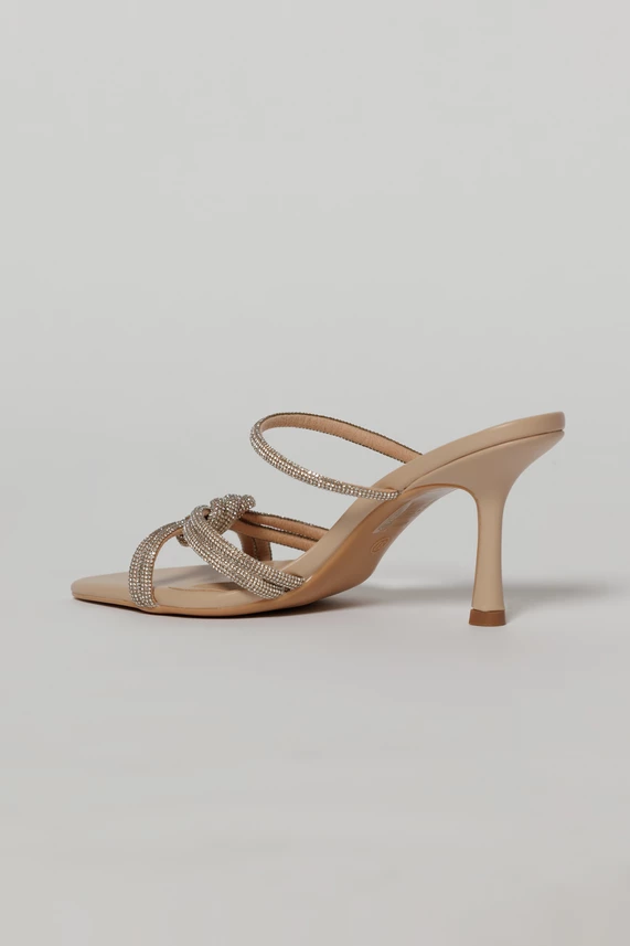 Sandale elegante cu varf ascutit si barete decorate cu pietricele stralucitoare. Au toc subtire, barete stralucitoare,nod decorativ si varf ascutit.