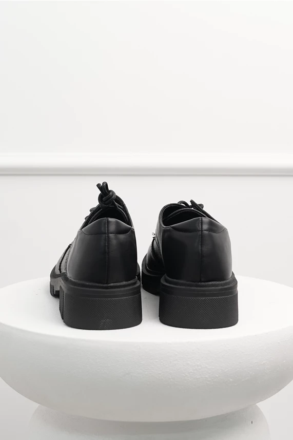 Pantofi Oxford negri din piele ecologica cu siret