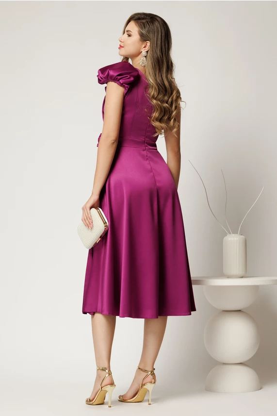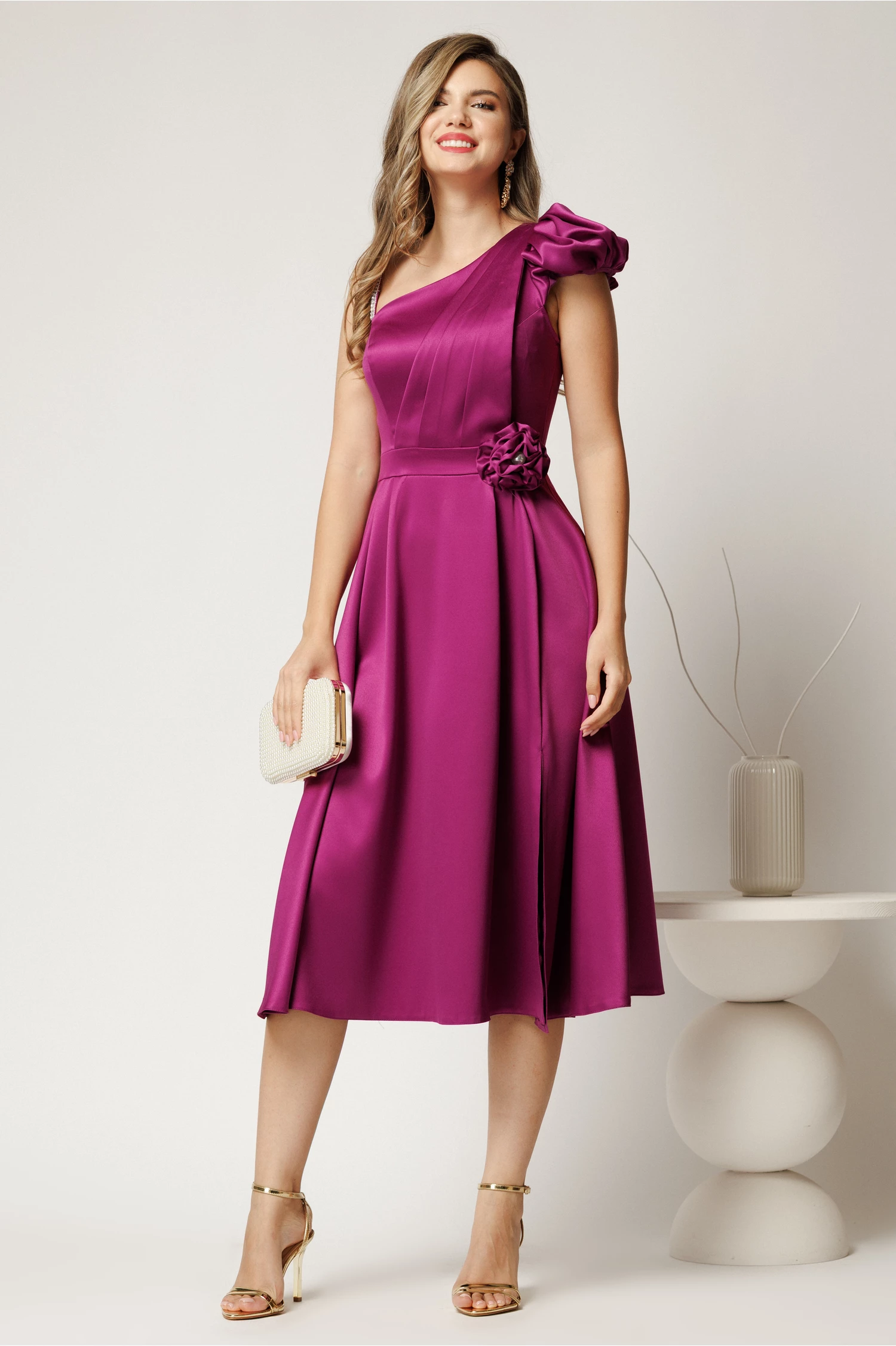 Rochie de ocazie din tafta magenta cu detaliu floare