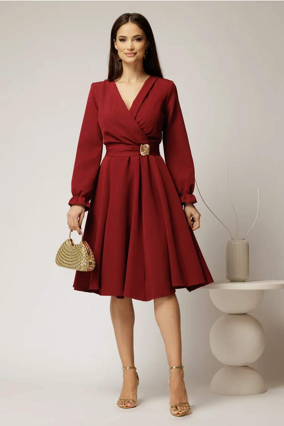 Rochie DY Fashion bordo cu decolteu petrecut si catarama aurie