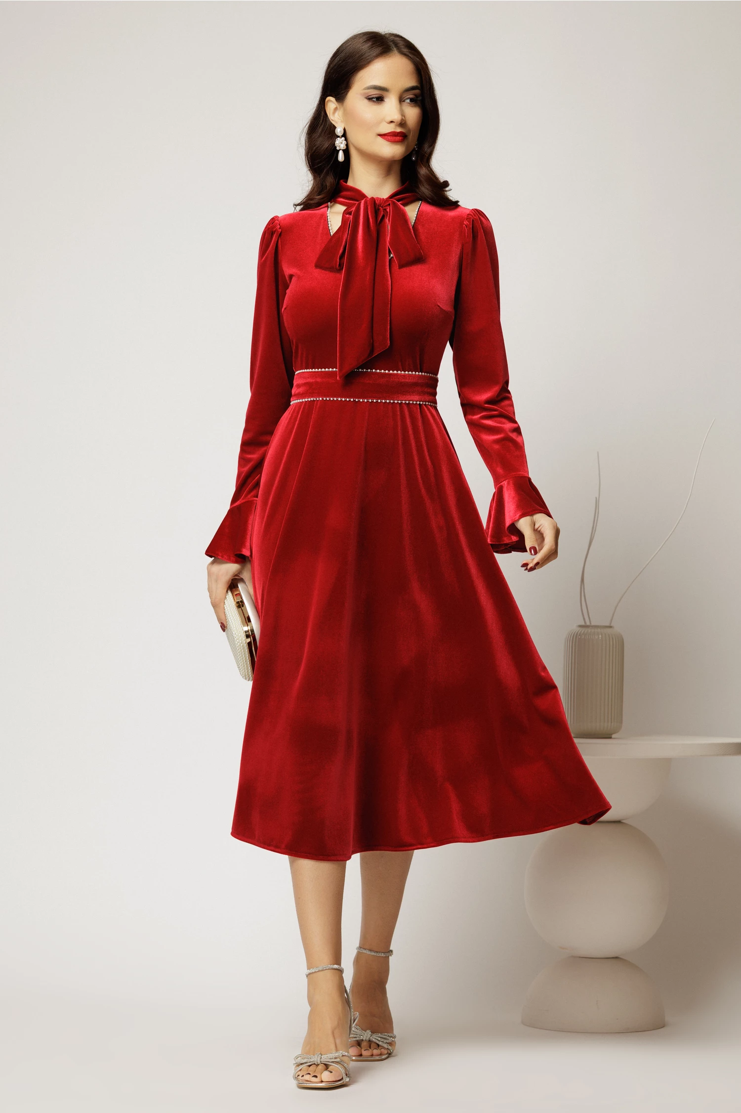 - rochie midi bordo din catifea
