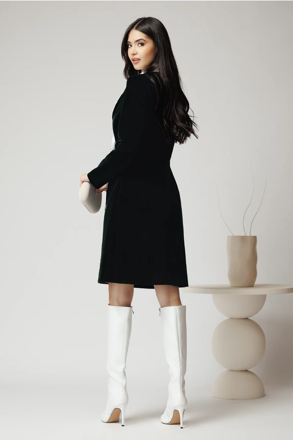 Rochie DY Fashion eleganta din catifea verde tip sacou cu rever din paiete