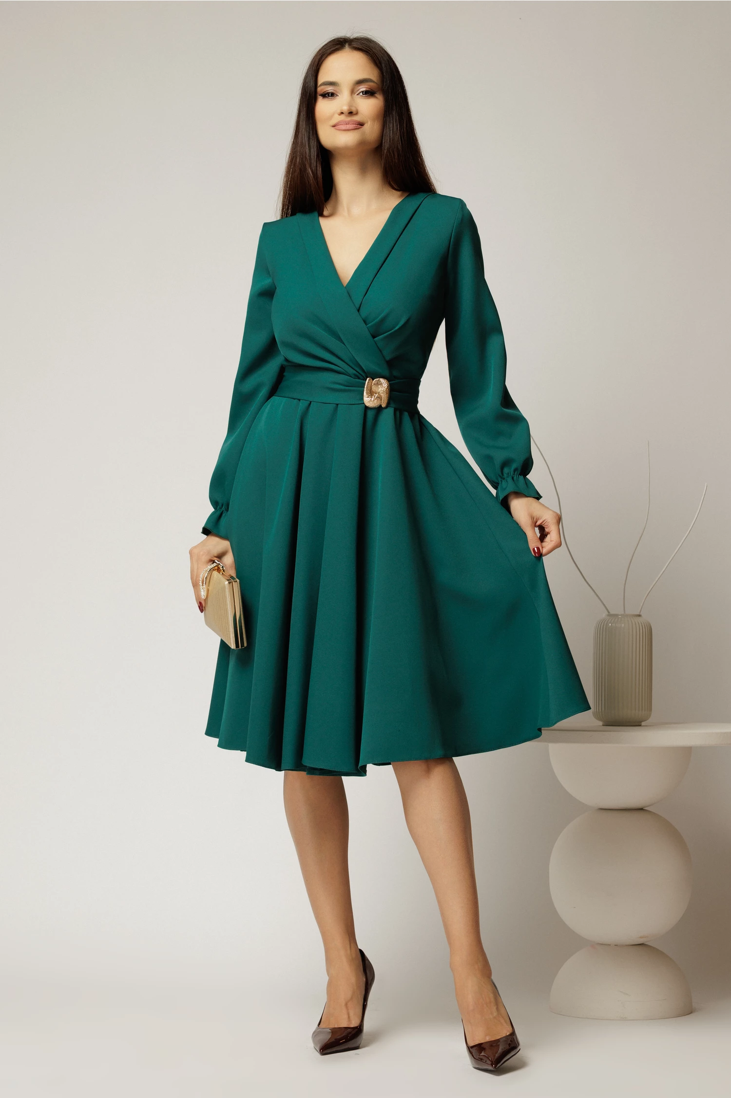 Rochie DY Fashion verde cu decolteu petrecut si catarama aurie