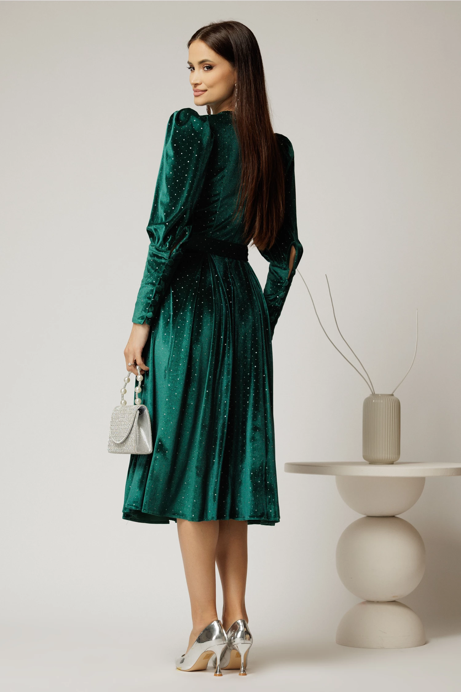 Rochie DY Fashion verde din catifea cu glitter argintiu