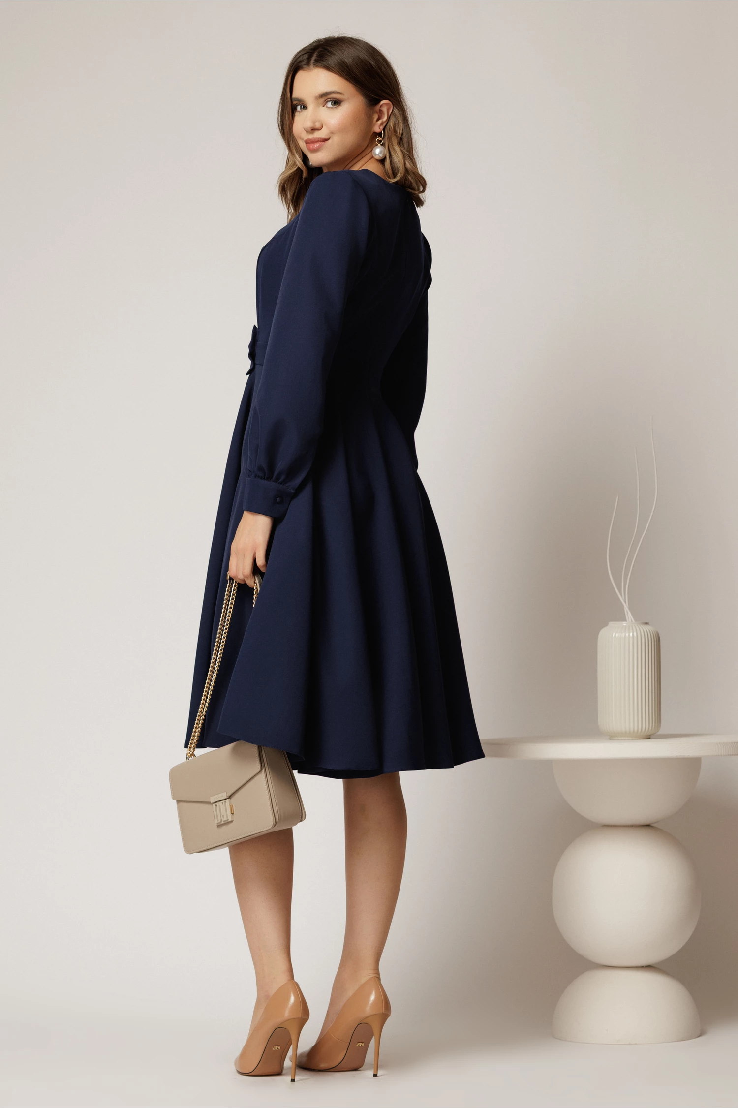 Rochie DY Fashion bleumarin midi cu funda in talie si decolteu V