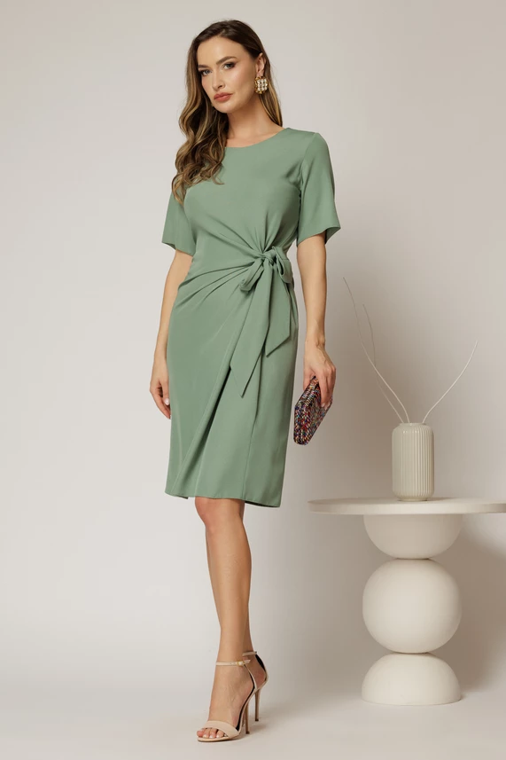 Rochie DY Fashion midi verde cu nod in talie si adaos de viscoza