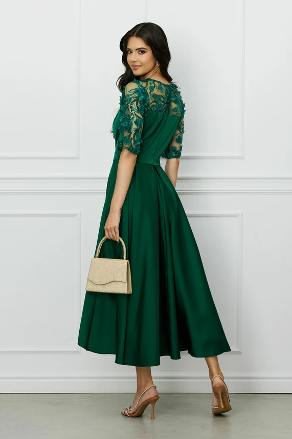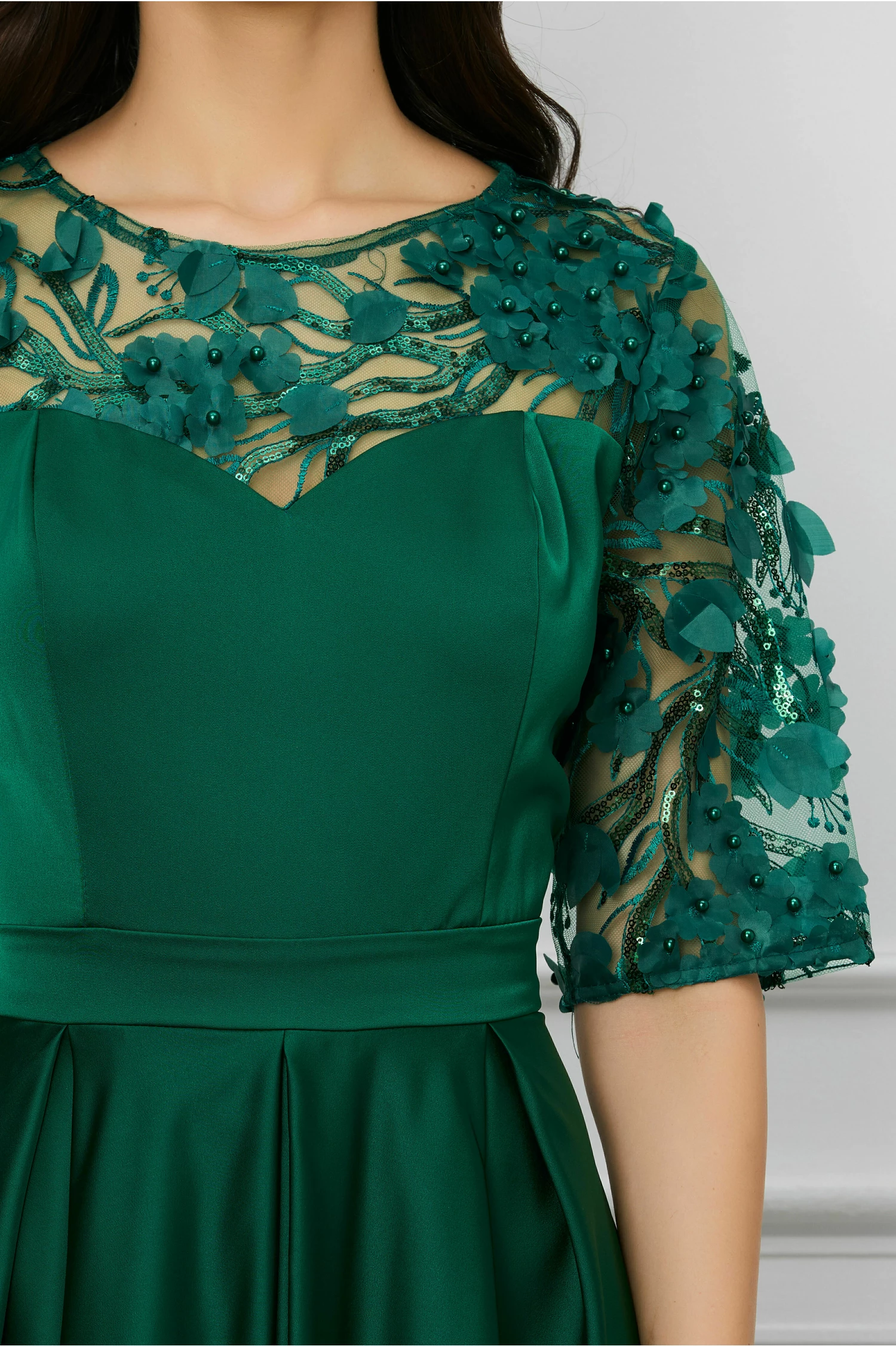 Rochie Brinda eleganta din tafta verde pin cu broderie 3D