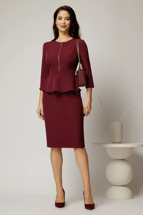 Rochie DY Fashion conica magenta cu peplum si fermoar metalic