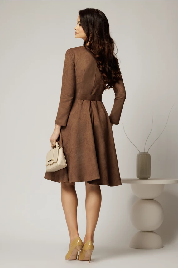 Rochie DY Fashion maro clos din piele intoarsa si curea in talie