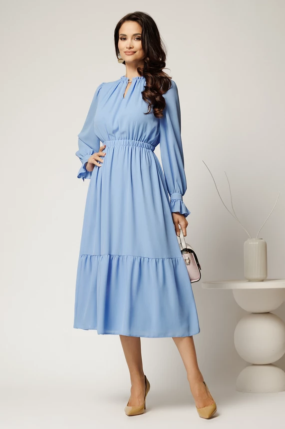 Rochie DY Fashion midi bleu din voal plin cu volan