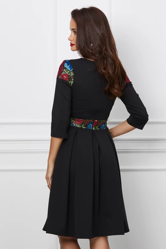 Rochie Ella Collection Sofia neagra cu broderie traditionala