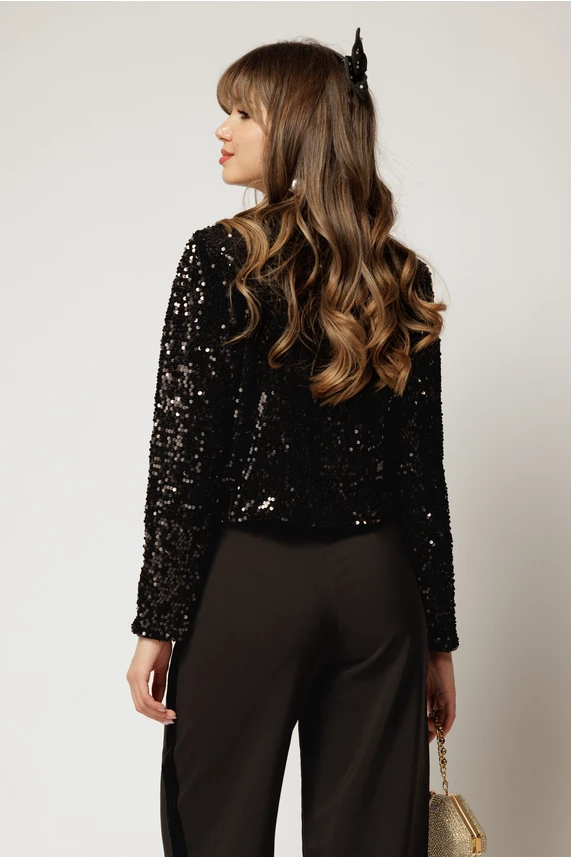 Bolero DY Fashion negru din catifea cu paiete