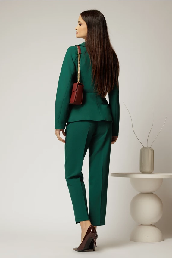 Este un elegant sacou de dama de culoare verde cu rever amplu si nasturi aurii. Sacoul are un croi cambrat si un usor peplum.