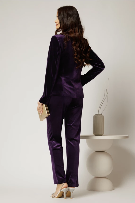 Sacou elegant din catifea mov si inchidere cu doi nasturi