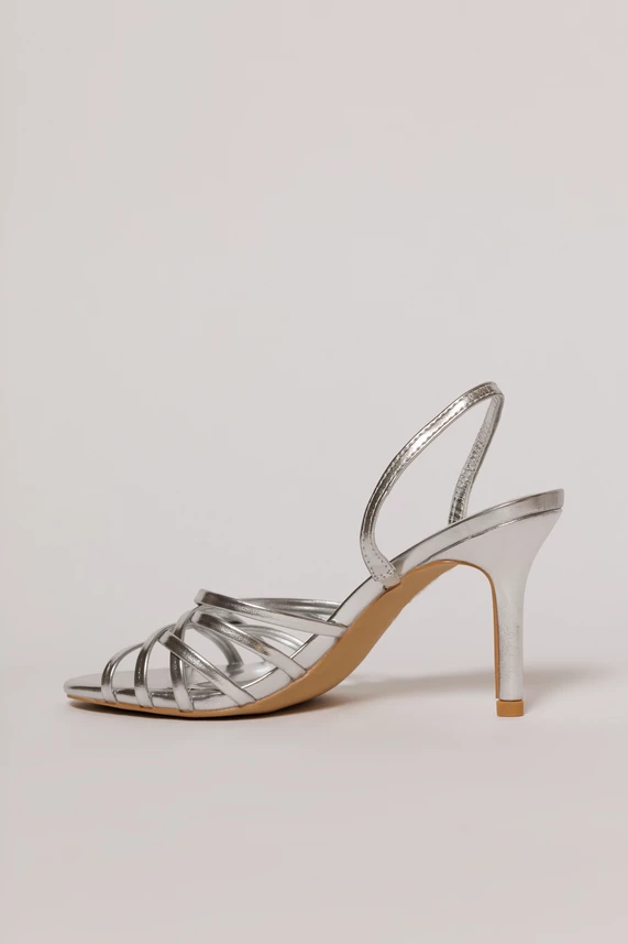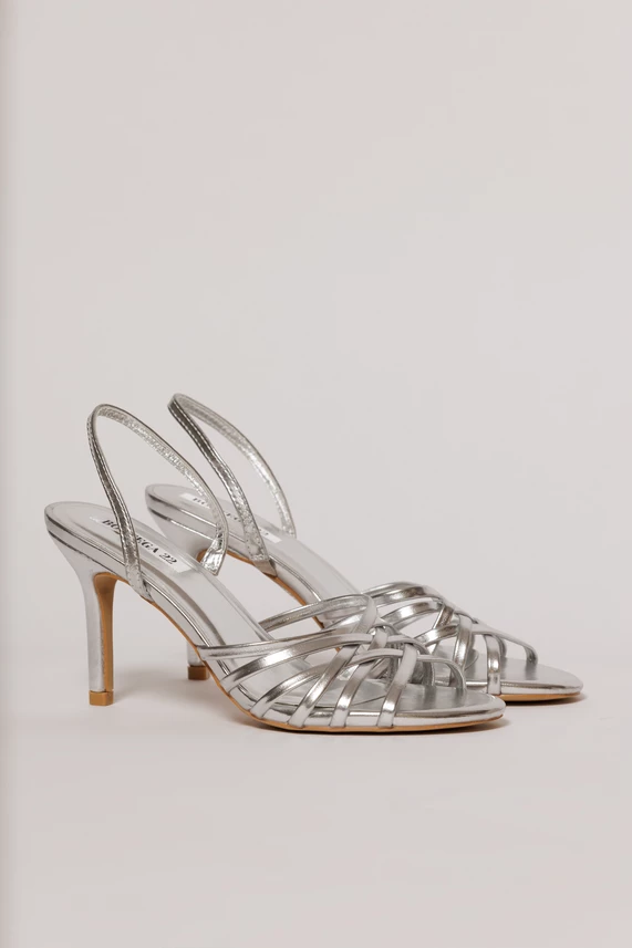 Sandale argintii cu barete impletite